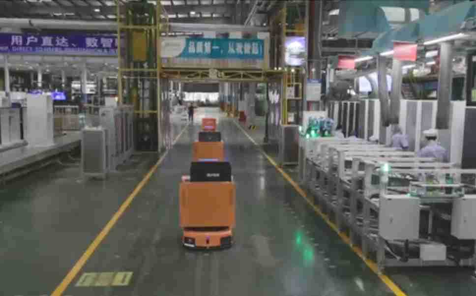 为车载冰箱物流配送打造的智能解决方案,,包含产中物流通过潜伏举升AMR搬运至线边,,,产后成品物流智能仓储,,,,流程包含产中物流智能齐套入库,,,线边安灯叫料AMR智能配送至线边,,,成品入库、、、出库,,,通过无人堆高车机器人,,,,智能仓储管理替代人工作业管理,,,实现更高存储、、更高效率、、、、更具柔性化的解决方案。。。